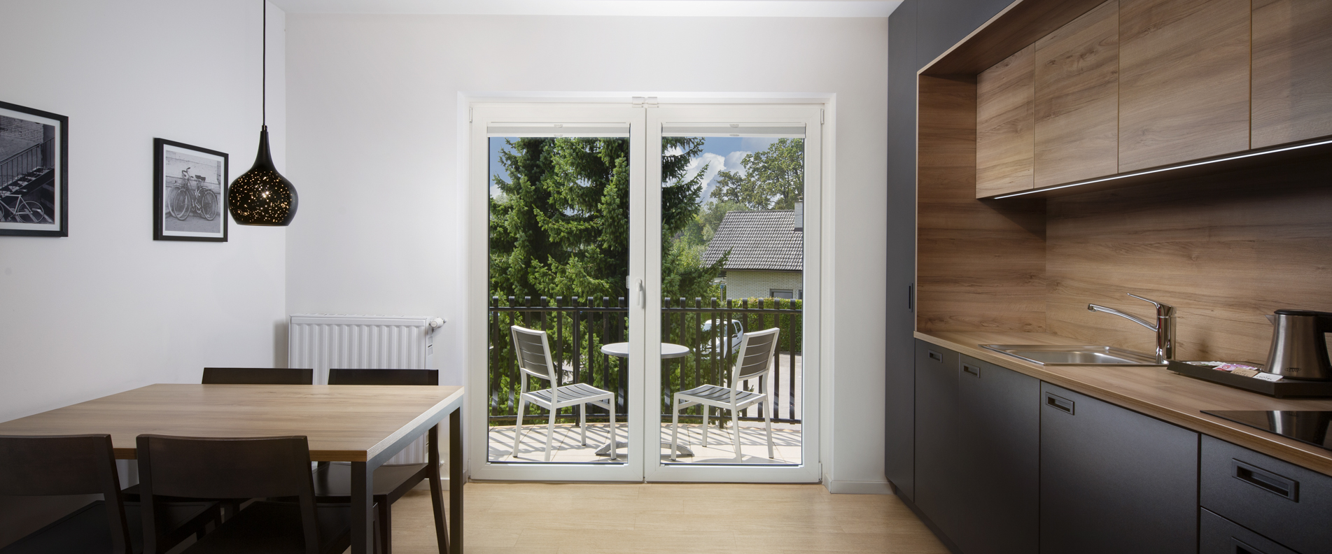- popolnoma opremljena kuhinja z jedilno mizo